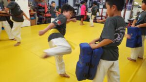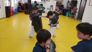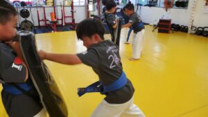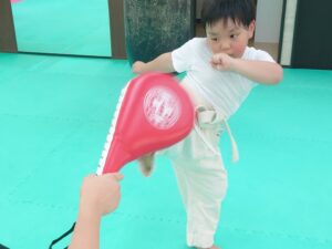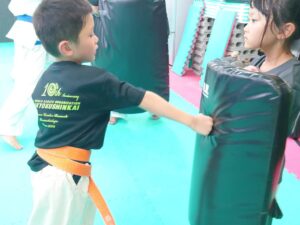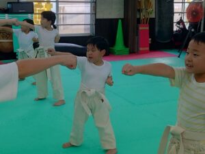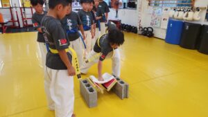 キッズクラスは先週に引き続き、試割りの稽古。