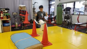 体幹を練り、バランス能力の向上トレーニングなどをたくさん行っています。