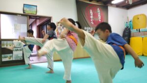 ジュニアクラスは足技太極を中心に。