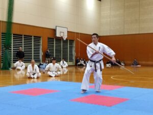 当道場では、昇段のために棒やトンファなどの武器術の習得を必須としています。