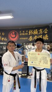 合宿中、太一初段が新極真会愛知中央支部の山本支部長に個別にたくさんのご指導を頂いたそうです。